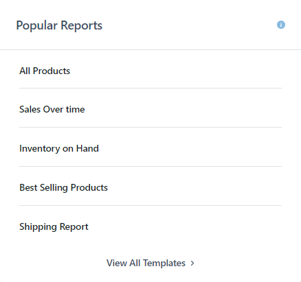 All the pre-made report types that are currently loved by our customers. The View All Templates button at the bottom of the panel leads to our Library page with the available templates.