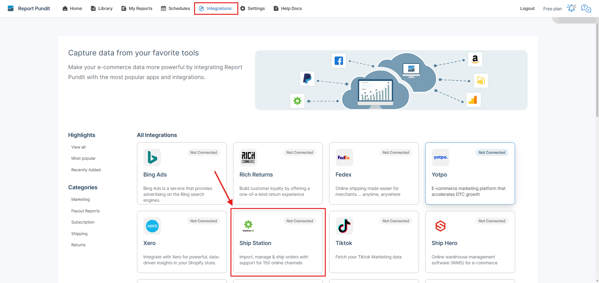 :white\_check\_mark: Click Connect to integrate Report Pundit with Ship Station